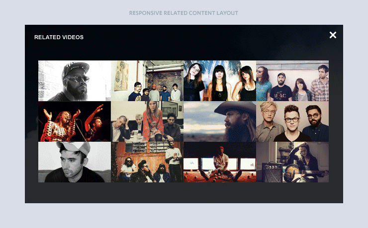 We continue to iterate and build out responsive behaviors for more features and we’re exploring responsive grid layouts for a wide range of player sizes. With our new related content overlay, you’ll see the number and size of thumbnails respond to specific player sizes to enhance the viewing experience.